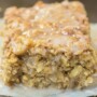 5. Remove baked oatmeal and allow to cool for 5 minutes, before glazing, if desired.